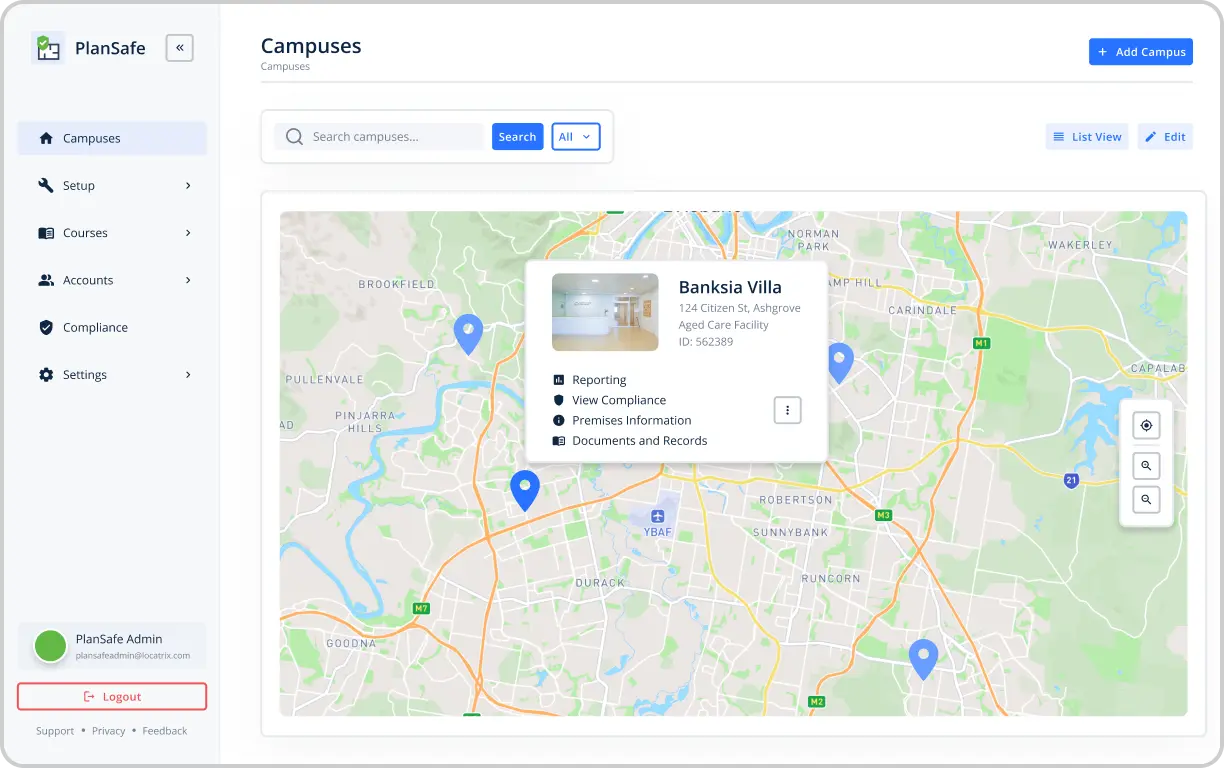 PlanStudio® enables aged care providers to create, update and manage evacuation diagrams and building information in one secure platform, ensuring documentation remains accurate as facilities evolve.